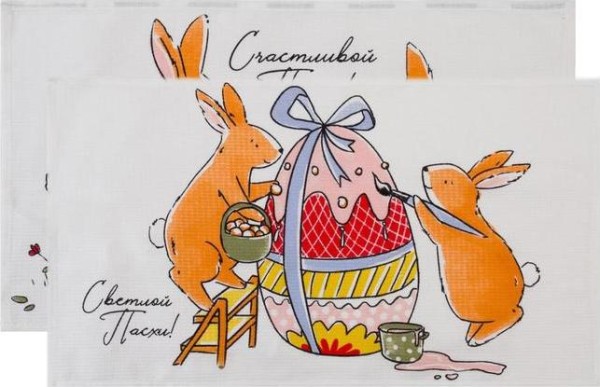 Набор кухонных полотенец Доляна «Пасхальные зайчики», 35х60см-2 шт, 100% хл, вафля 160 г/м2