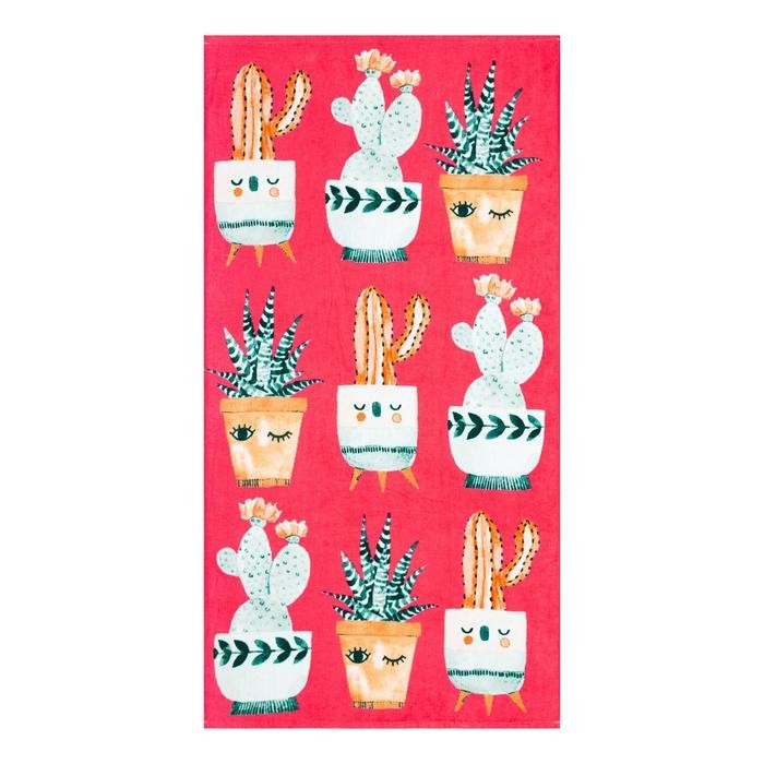 Полотенце «Сукуленты» 70*140 см, велюр/махра 350гр/м2, 100% хлопок