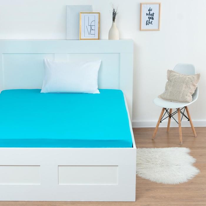 Трикотажная простынь на резинке 160х200х25см, бирюзовый кулирка
