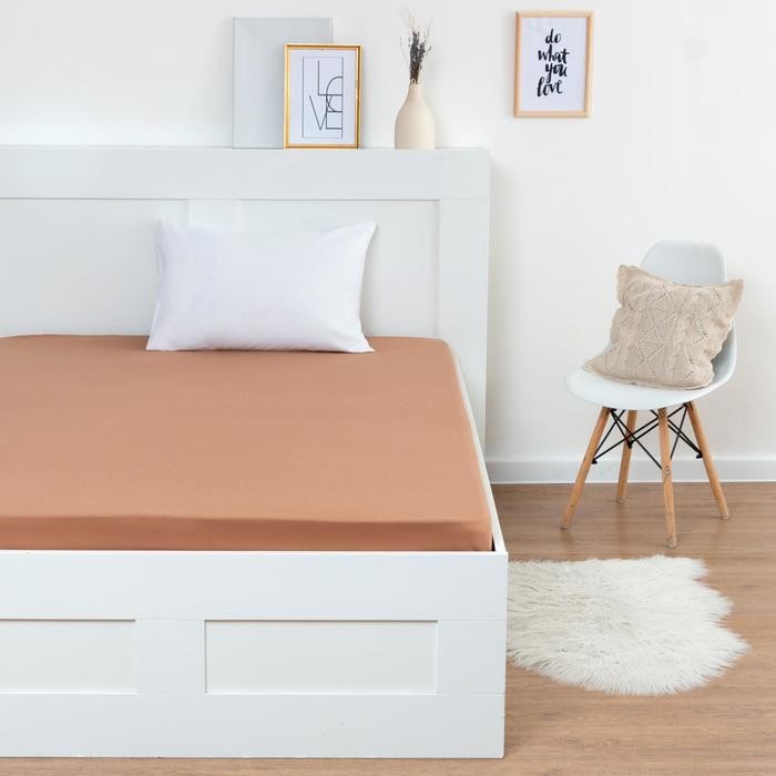 Простыня на резинке трикотажная, размер 90х200х25см, цвет коричневый, кулирка 120г/м², 100% хлопок