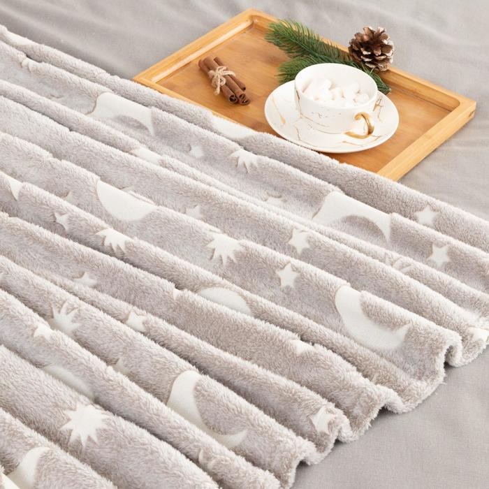 Плед светящийся в темноте Этель «Луна» 150*200 см,100% п/э, корал-флис, 220 гр/м2