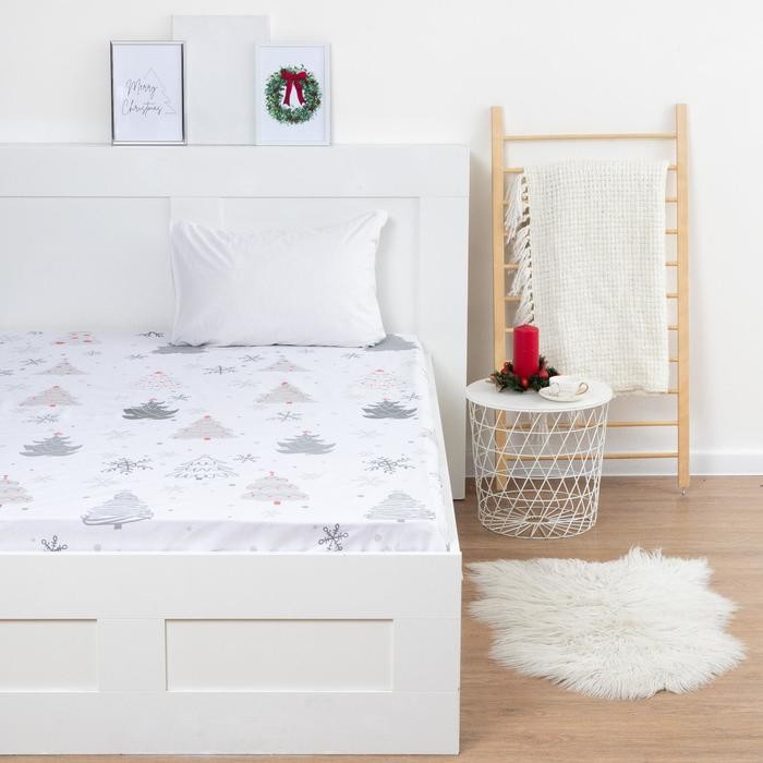 Простыня на резинке Этель 180*200*25 см «Рождественская ель», 100% хлопок, бязь, 125 гр/м2