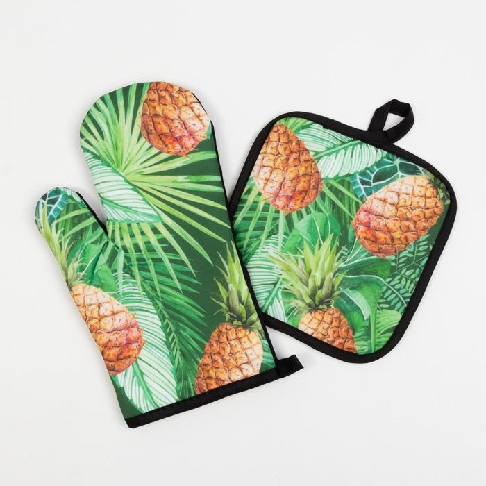 Кухонный набор Доляна «Ананасы» прихватка 17*17 см, варежка-прихватка 26*16 см, 100% п/э