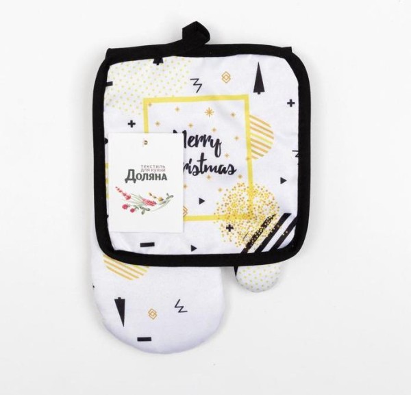 Кухонный новогодний набор Доляна Merry Christmas, прихватка 17*17 см, варежка 25*17 см,100% п/э