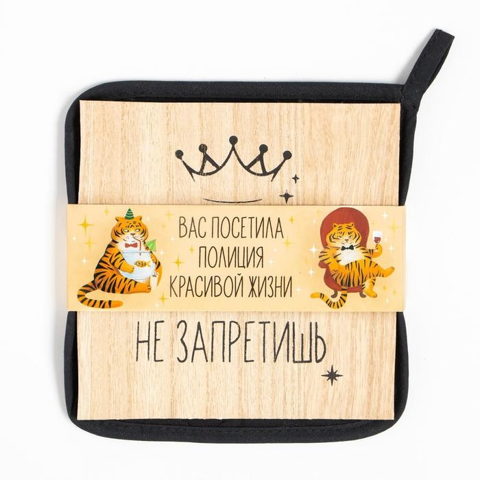 Новогодний подарочный набор кухонный «Красиво жить не запретишь» подставка, прихватка