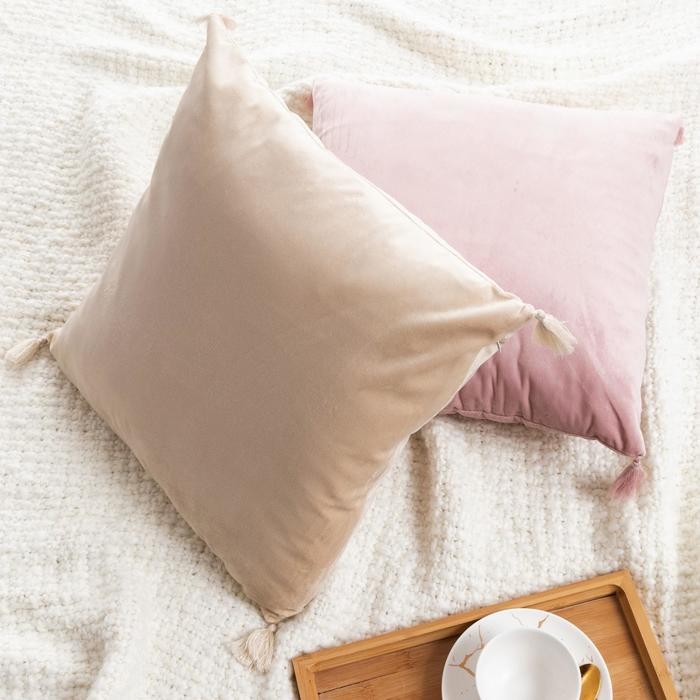 Наволочка на подушку с кисточками Этель цвет молочный, 45×45 см, 100% п/э, велюр