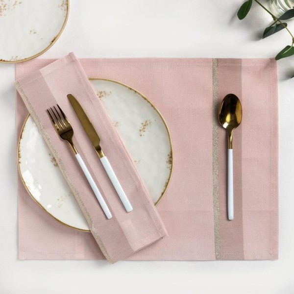Набор салфеток «Этель» 45×35 см — 2 шт, цв. пудровый с золотой нитью, 100% хлопок, 163 г/м2