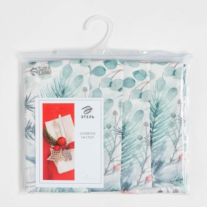 Набор новогодних салфеток Этель «Christmas flowers» 46×46 см — 4шт., 100%хл, саржа 190 г/м2