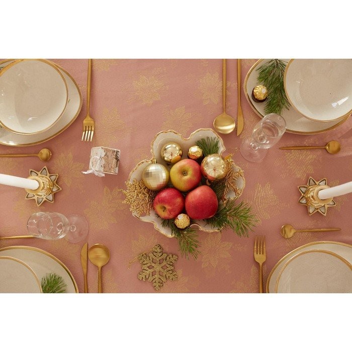 Скатерть Этель «Пуансеттия» цв.розовый, 142*110 +/-3 см, 115 ±10 гр,100% п/э