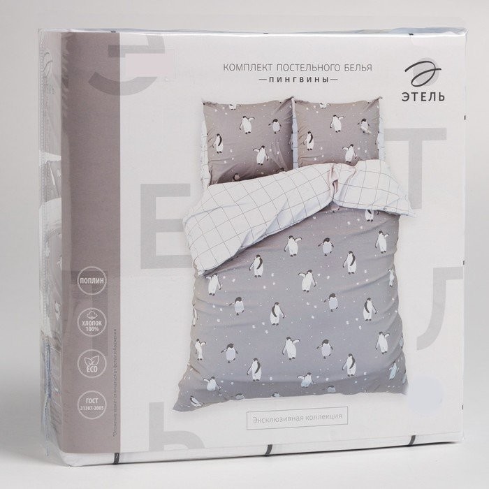 Постельное белье Этель 2 сп «Пингвины» 175*215 см, 200*220 см, 70*70 см — 2 шт