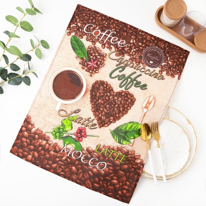 Полотенце 45×60 см, Кофе (ри.2), коричневый, вафля, 160 гр/м2, хлопок 100%
