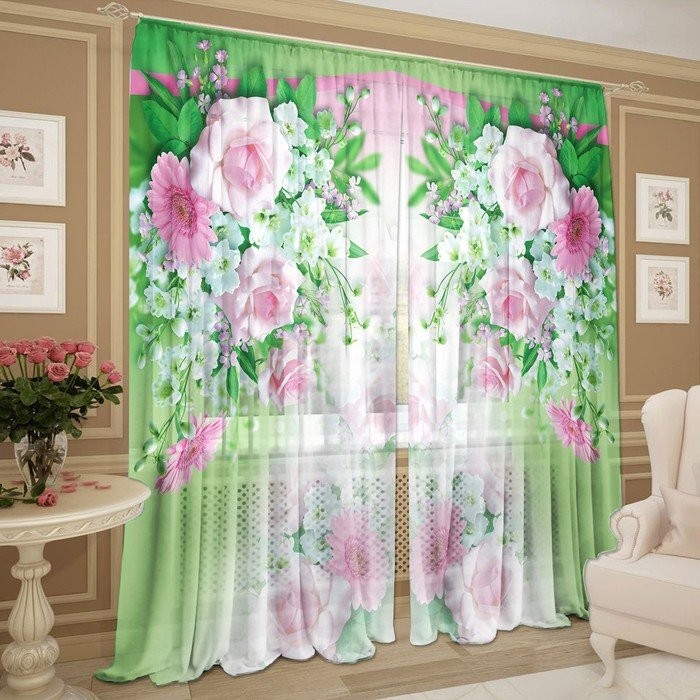 | Тип тюли: | Готовый, С рисунком, С цветами |
