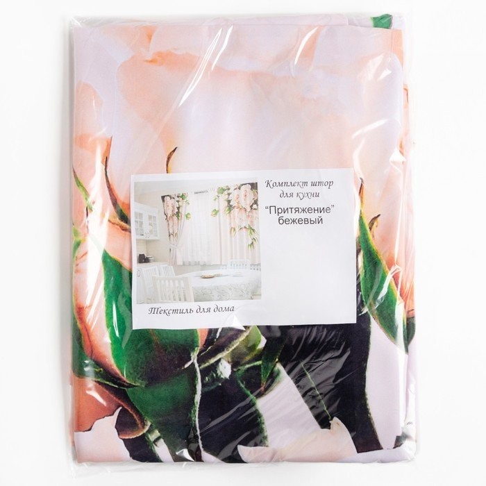 Фотошторы для кухни Притяжение бежевый 147х160см-2шт, габардин, пэ 100%, 145г/м3