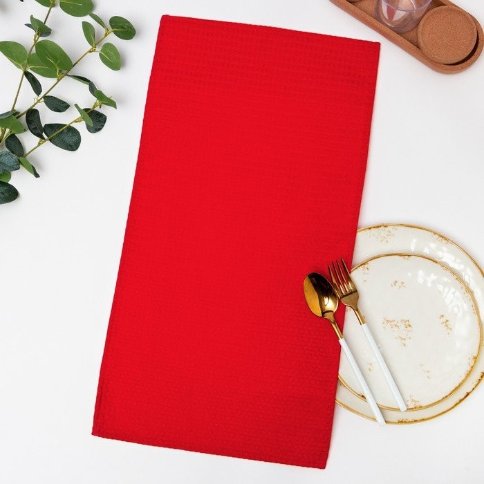 Полотенце 45×60 см, красный, вафля, 240 гр/м2, хлопок 100%