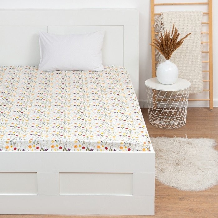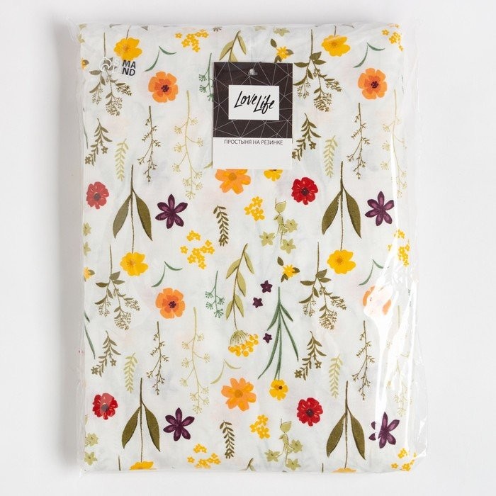 Простыня на резинке LoveLife 160*200*25см, «Цветочная поляна», 100% хлопок, сатин, 125г/м²