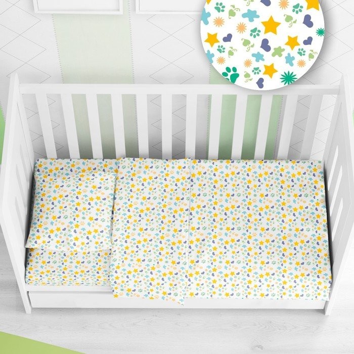 Постельное бельё детский Русский дом «Звездочки и лапки синий» 112×147, 100×150, 40х60см, бязь, 120 г/м,