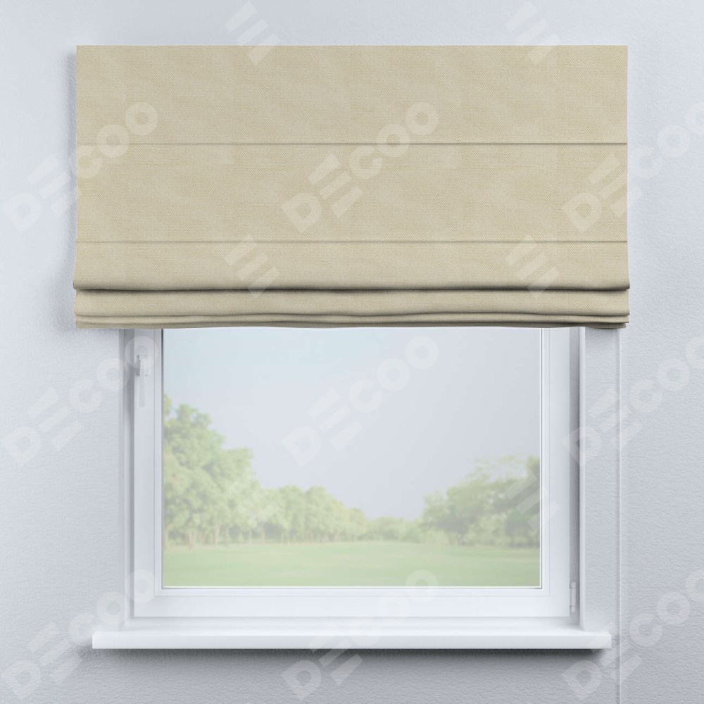 Римская штора производителя «Cortin», используется для проёма, пошита из ткани лён димаут бежевый, артикул ткани 83023. Имеет универсальный механизм и подходит для монтажа: на потолок, на стену и в нишу.