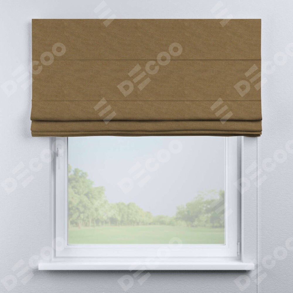 Римская штора производителя «Cortin», используется для проёма, пошита из ткани лён димаут коричневый, артикул ткани 83026. Имеет универсальный механизм и подходит для монтажа: на потолок, на стену и в нишу.