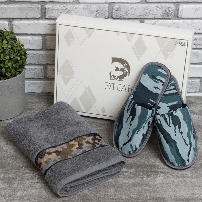 Набор подарочный Этель «Милитари Grey» полотенце 70*130 см+тапки муж 42 р-р
