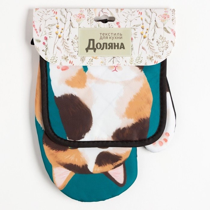 Кухонный набор (2 предмета) Доляна Котики «Василий», прихватка 17×17 см, варежка 24*18 см, 100% п/э