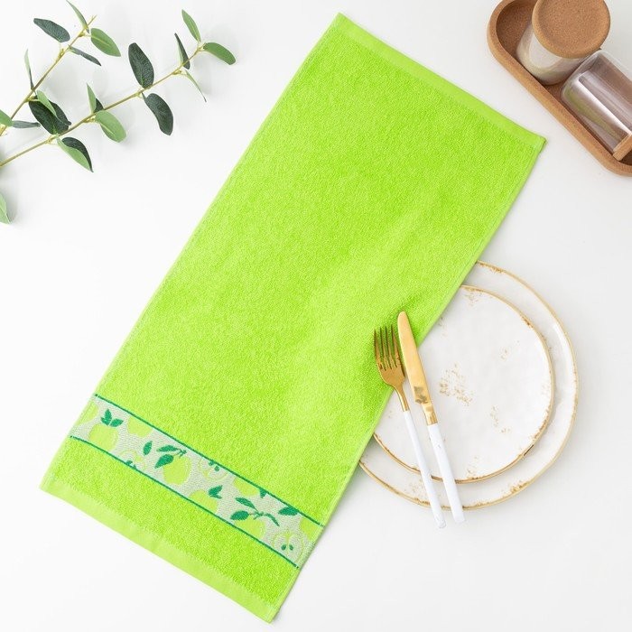 Полотенце 30*60 см, Яблоки, салатовый, 340 гр/м, махра, хл