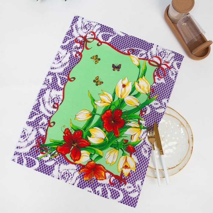 Полотенце 45×60 см, Цветы, сиреневый, вафля, 160 гр/м2, хлопок 100%