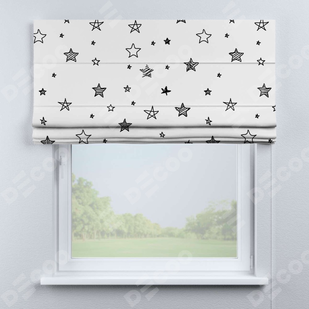Римская штора производителя «Cortin», используется для проёма, пошита из ткани блэкаут с нанесением сублимационной печати «Звёзды». Имеет универсальный механизм и подходит для монтажа: на потолок, на стену и в нишу.