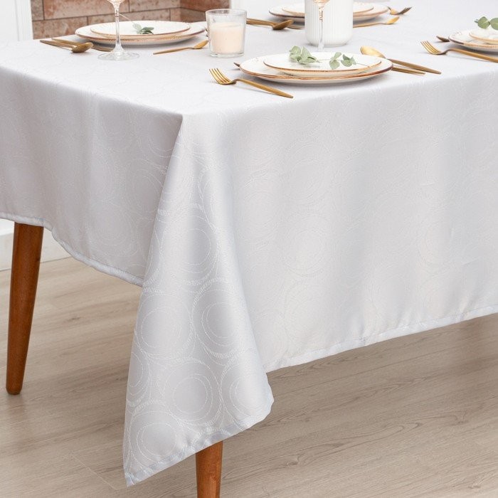 Скатерть Этель «Круги» цв.серебро, 142*110 +/-3 см, 115 ±10 гр,100% п/э