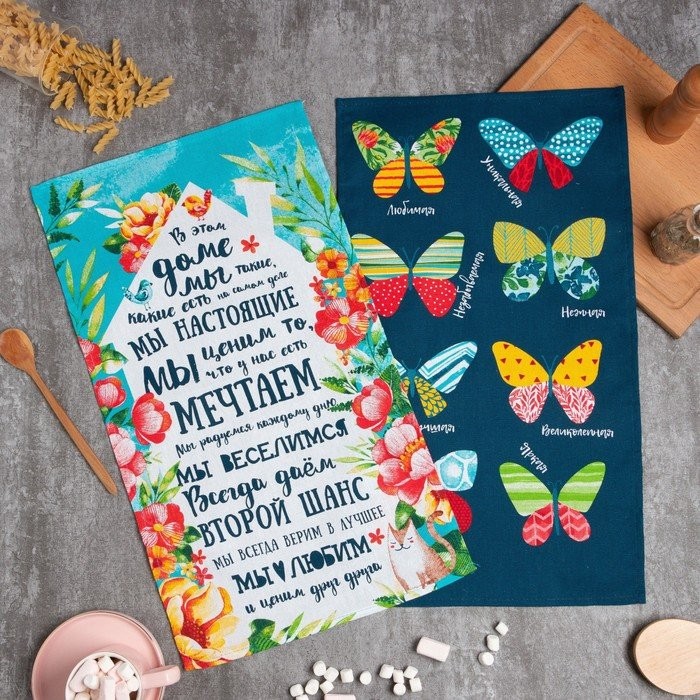Набор кухонных полотенец Доляна «Тебе» 35х60см-2шт, 100% хл