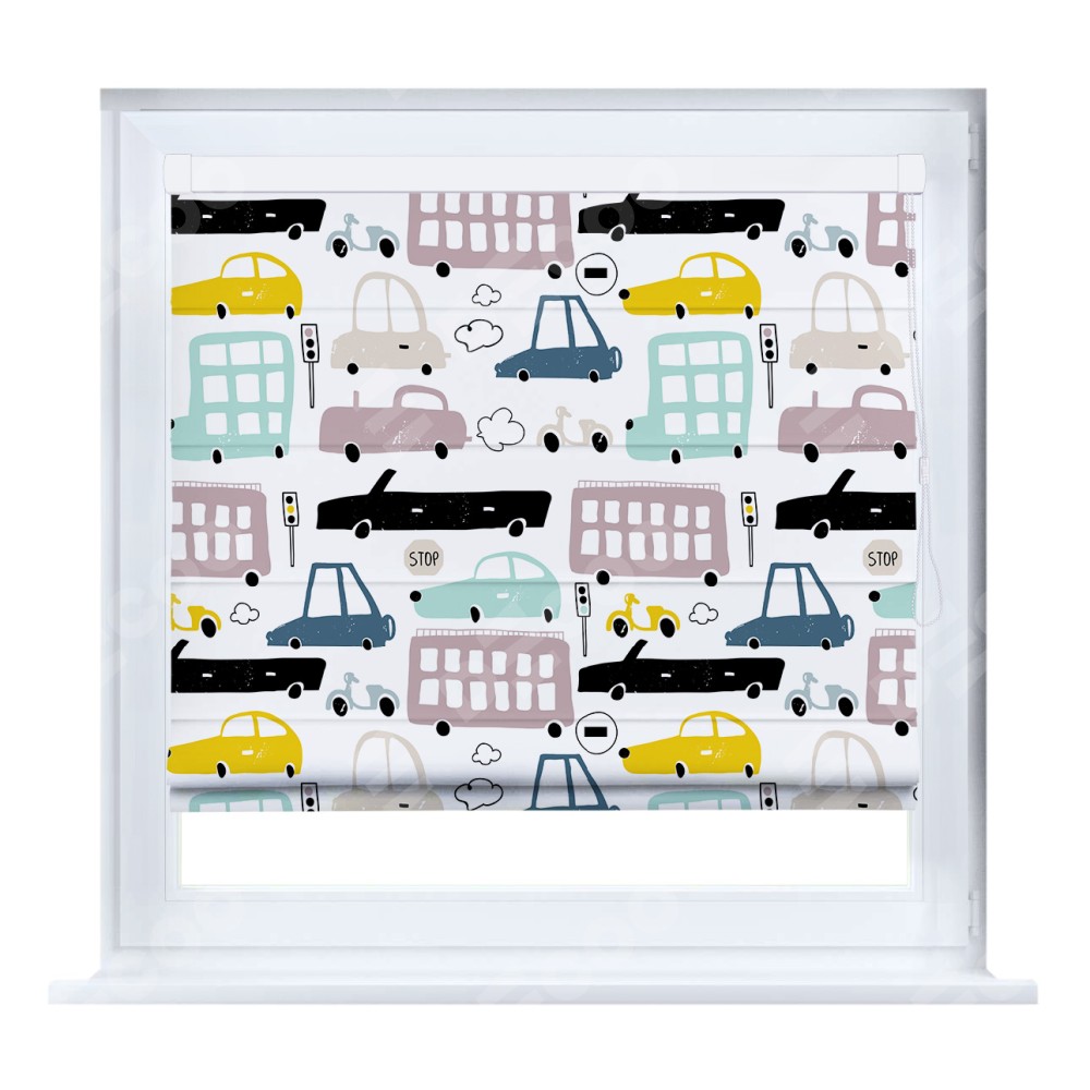 Римская штора производителя «Cortin», устанавливается на створку окна, пошита из ткани блэкаут с нанесением сублимационной печати «Красочный трафик». Штора шьётся по индивидуальным размерам, для данного типа римской шторы возможная ширина от 35 до 150 см., высота до 250 см.