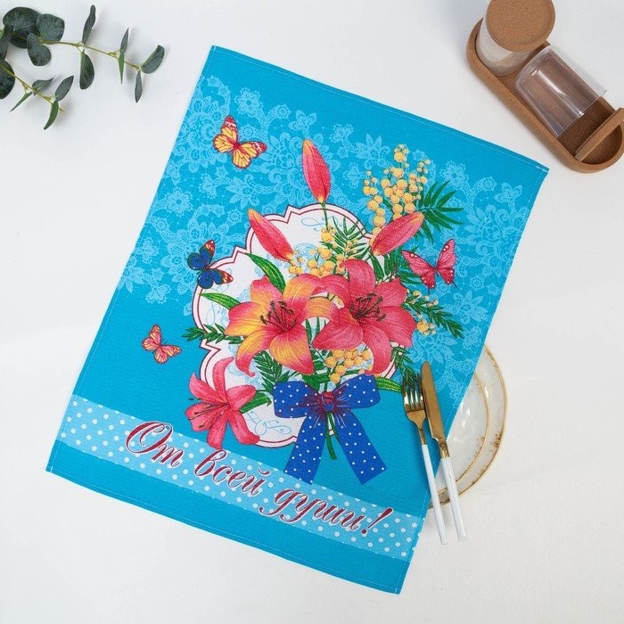 Полотенце 45×60 см, Лилия, бирюза, вафля, 160 гр/м2, хлопок 100%