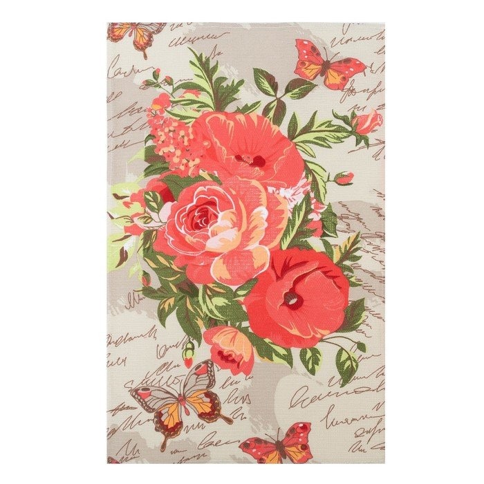 Полотенце в коробке 35×60 см, Букет розы-маки, вафля, 160 гр/м2, хлопок 100%