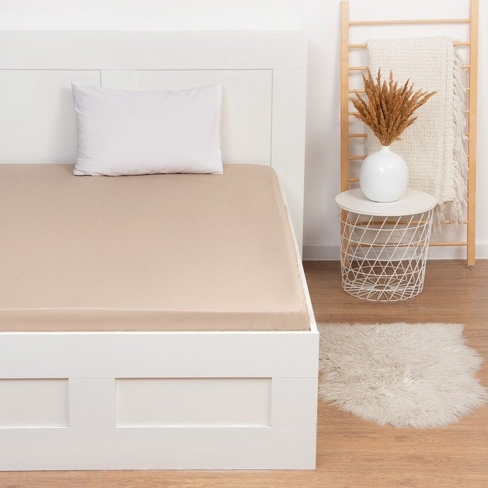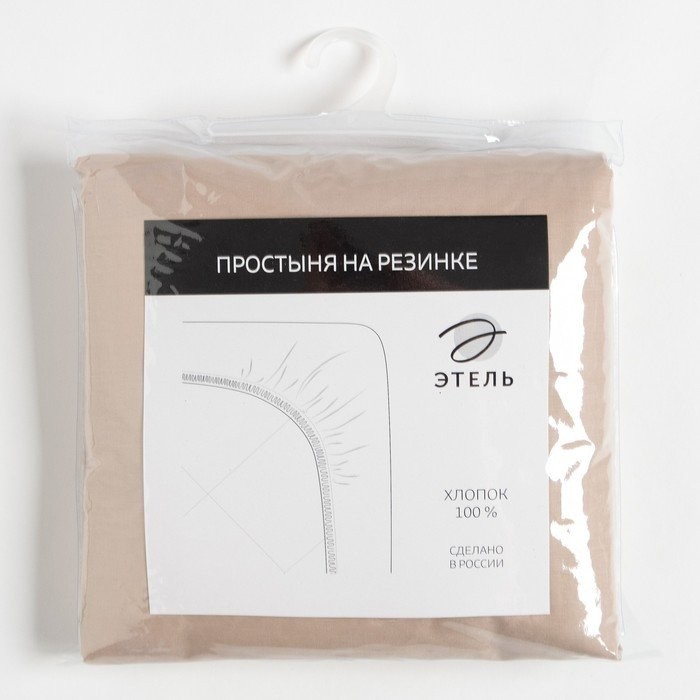 Простыня на резинке «Этель» 180х200×25 см, бежевый, 100% хлопок, перкаль