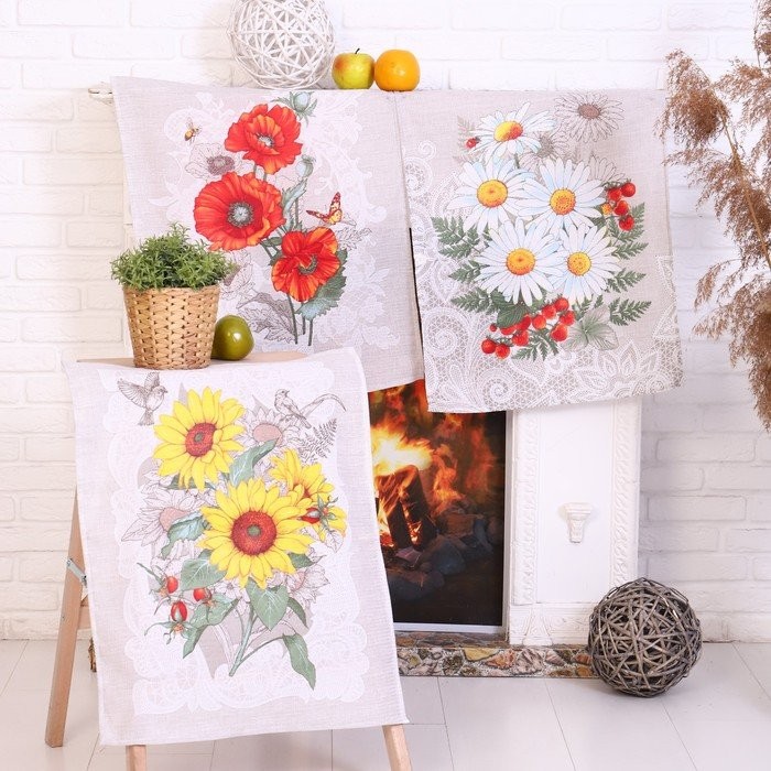 Набор полотенец в пакете Подсолнух 45×60 см, 3 шт, вафля, 170 гр/м2, хлопок 100%