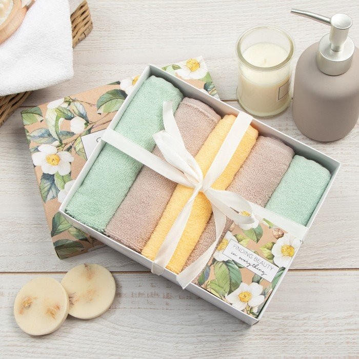Набор махровых полотенец Этель Summer time 30×30 см -5шт, 100% хлопок 340 гр/м2