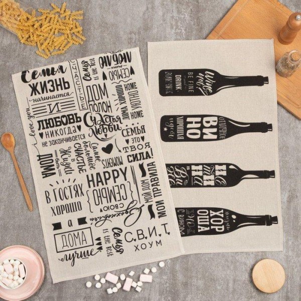 Набор кухонных полотенец Доляна Wine 35х60см-2шт, 100% хл