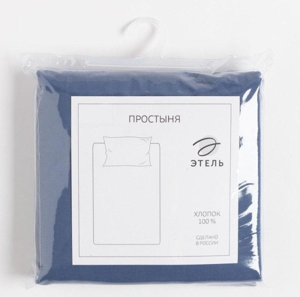 Простыня Этель 220*240 ± 3 см, цв. синий, жатый хлопок, 140 гр/м2, 100% хлопок