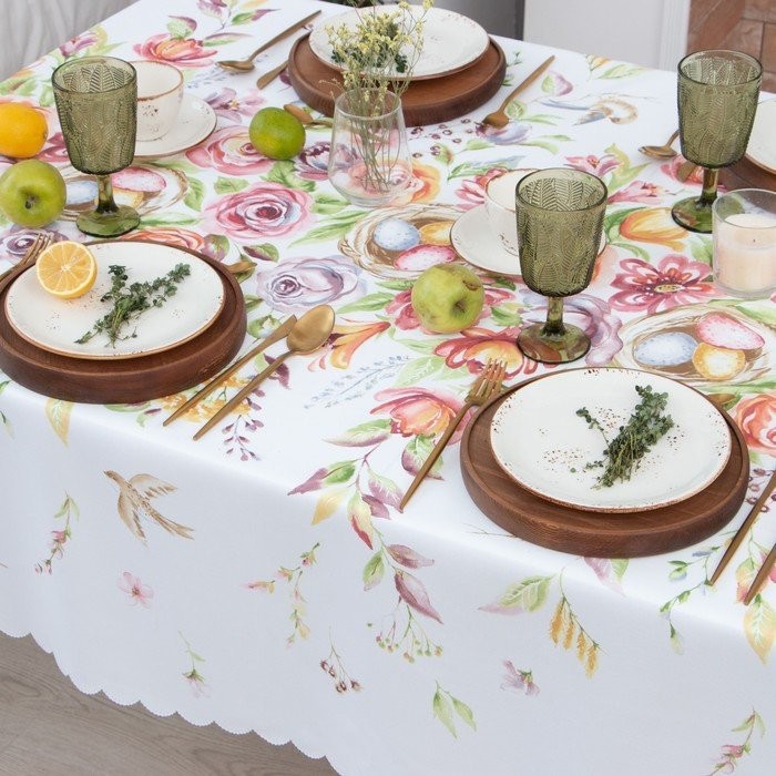 Скатерть Доляна «Цветочная сказка» 145×300 см, 100% п/э