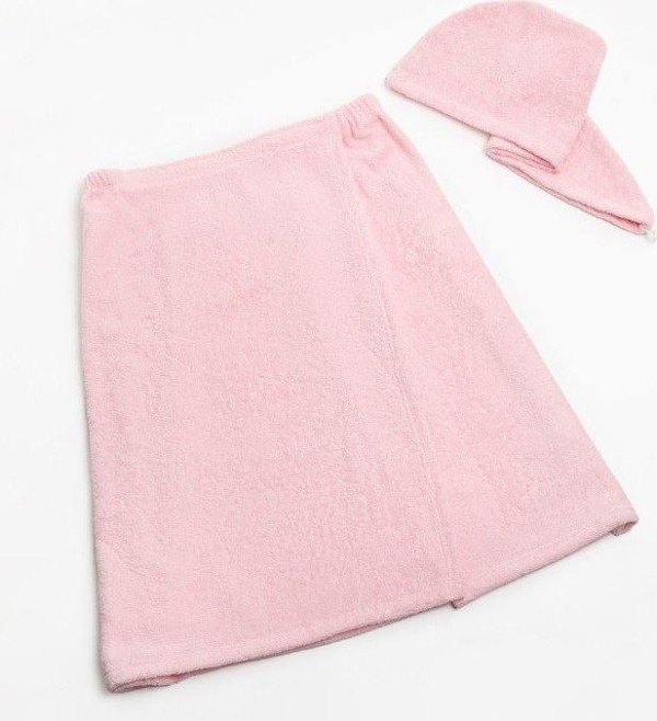 Набор для сауны Экономь и Я: полотенце-парео 68*150см + чалма, цв.св-розовый,100%хл, 320 г/м2