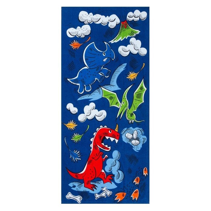 Полотенце Love Life «Динозаврики» 70*140 см, велюр/махра 340гр/м2, 100% хлопок