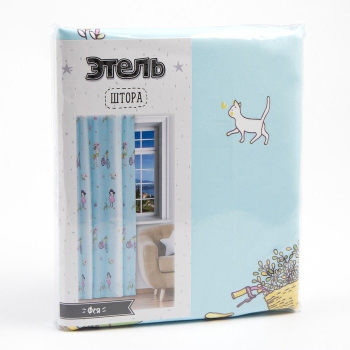 Портьера Этель «Фея» без держателя, цвет голубой, 170×260 см, блэкаут, 100% полиэстер