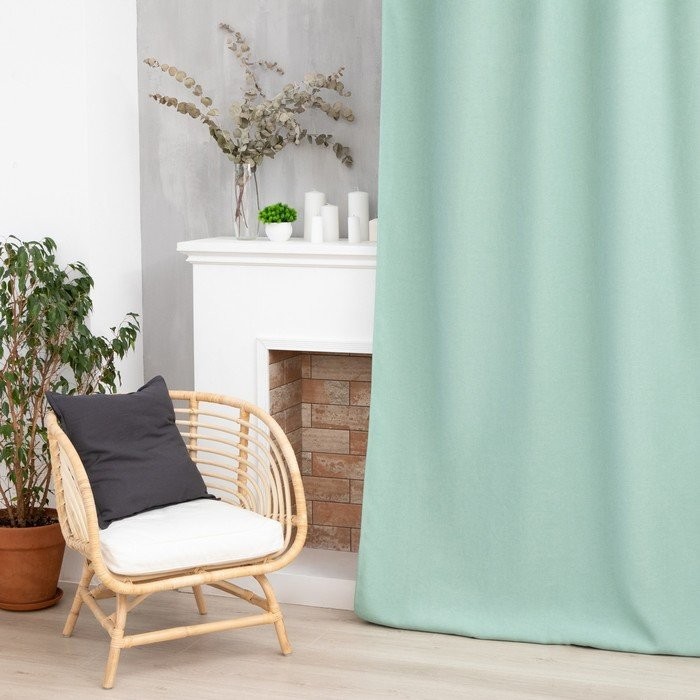 Штора портьерная Этель «Структурная», цвет светло зелёный, на шторной ленте, 250×265 см, 100% п/э
