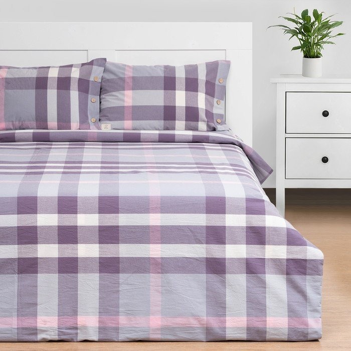 Постельное бельё Этель 1.5 сп «Клетка» 155×210 см, 160×240 см, 50×70−2шт, 100% жатый хлопок, 140гр/м2