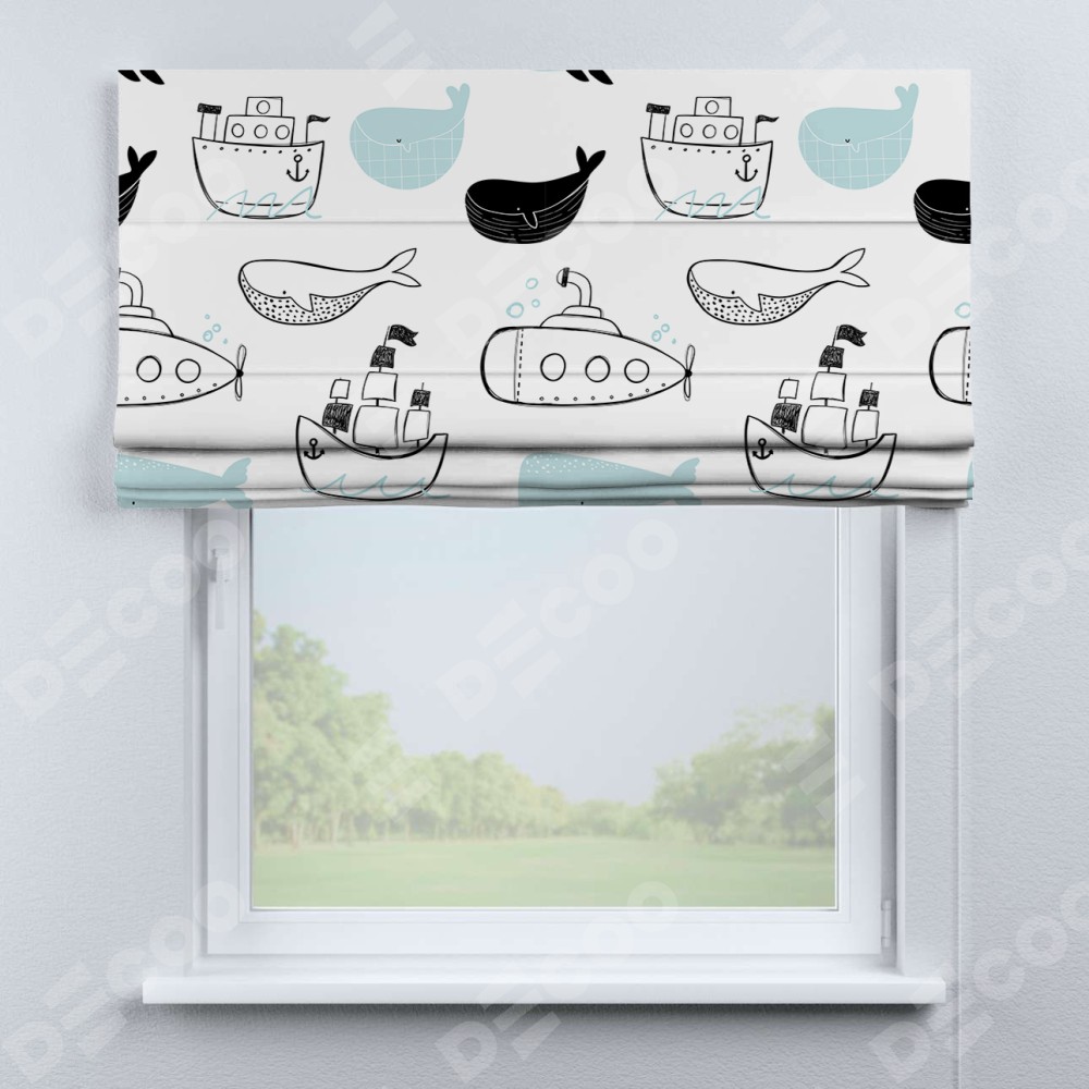 Римская штора производителя «Cortin», используется для проёма, пошита из ткани блэкаут с нанесением сублимационной печати «Морская прогулка». Имеет универсальный механизм и подходит для монтажа: на потолок, на стену и в нишу.