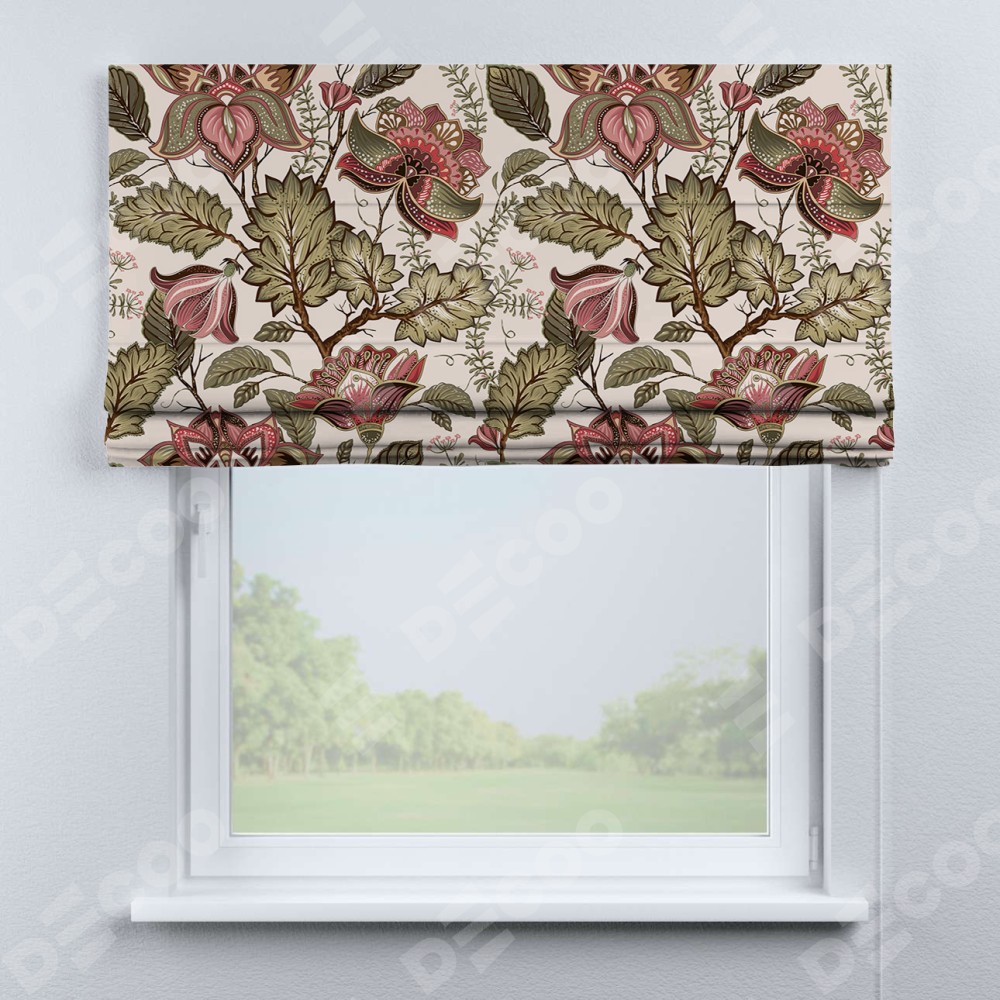 Римская штора производителя «Cortin», используется для проёма, пошита из ткани блэкаут с нанесением сублимационной печати «Старинные цветы». Имеет универсальный механизм и подходит для монтажа: на потолок, на стену и в нишу.