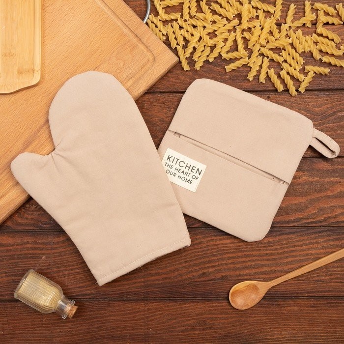 Набор кух. Этель Kitchen, цв. бежевый, варежка-прихватка 18×29 см, прихватка 19×19 см