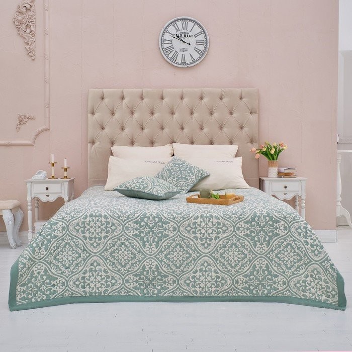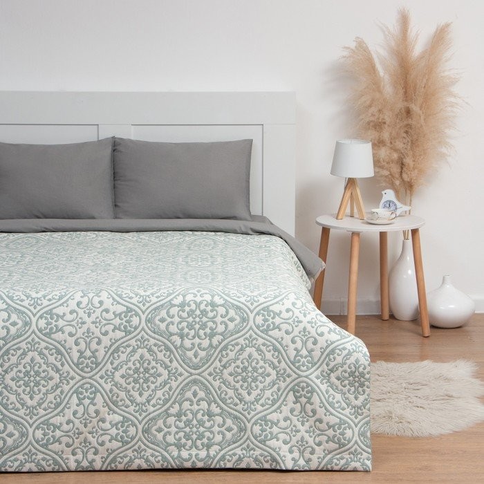 Покрывало хлопковое Этель «Орнамент» 180×240 см, цвет зелёный, 100% хлопок, 300гр/м2