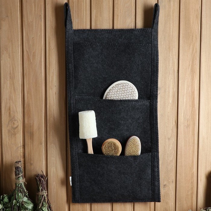 Коврик банный настенный, войлок, 3 кармана 79×36 см черный