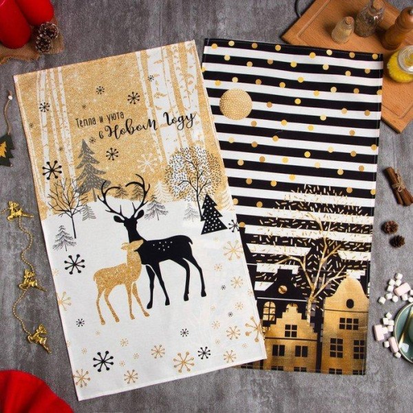 Набор полотенец Этель «Золотой город» 40×67 см — 2 шт, 100% хл, саржа 190 гр/м2