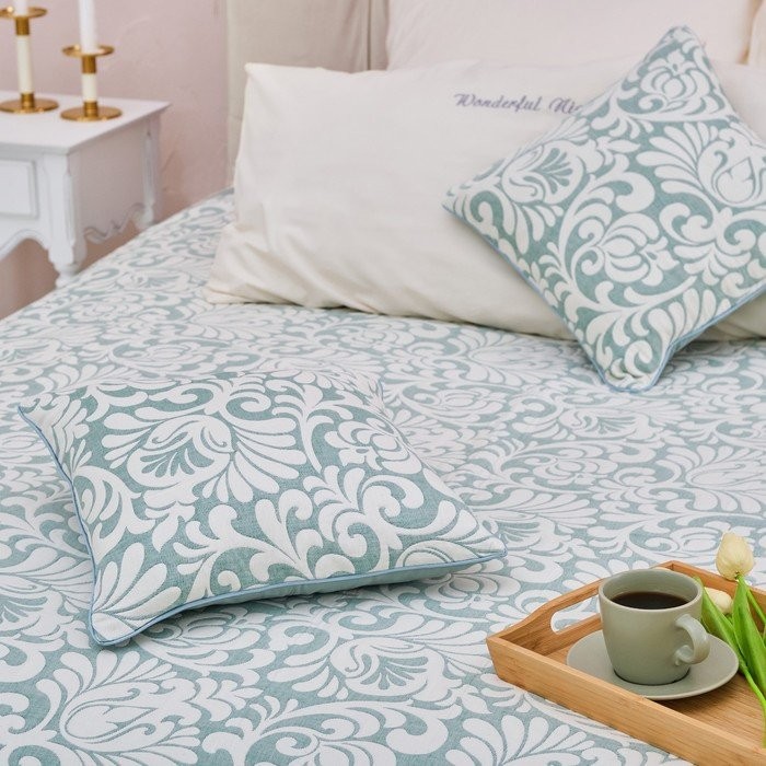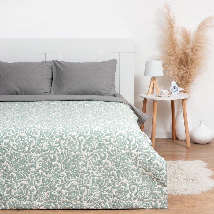Покрывало хлопковое Этель «Узоры» 150×240 см, цвет зелёный, 100% хлопок, 300гр/м2